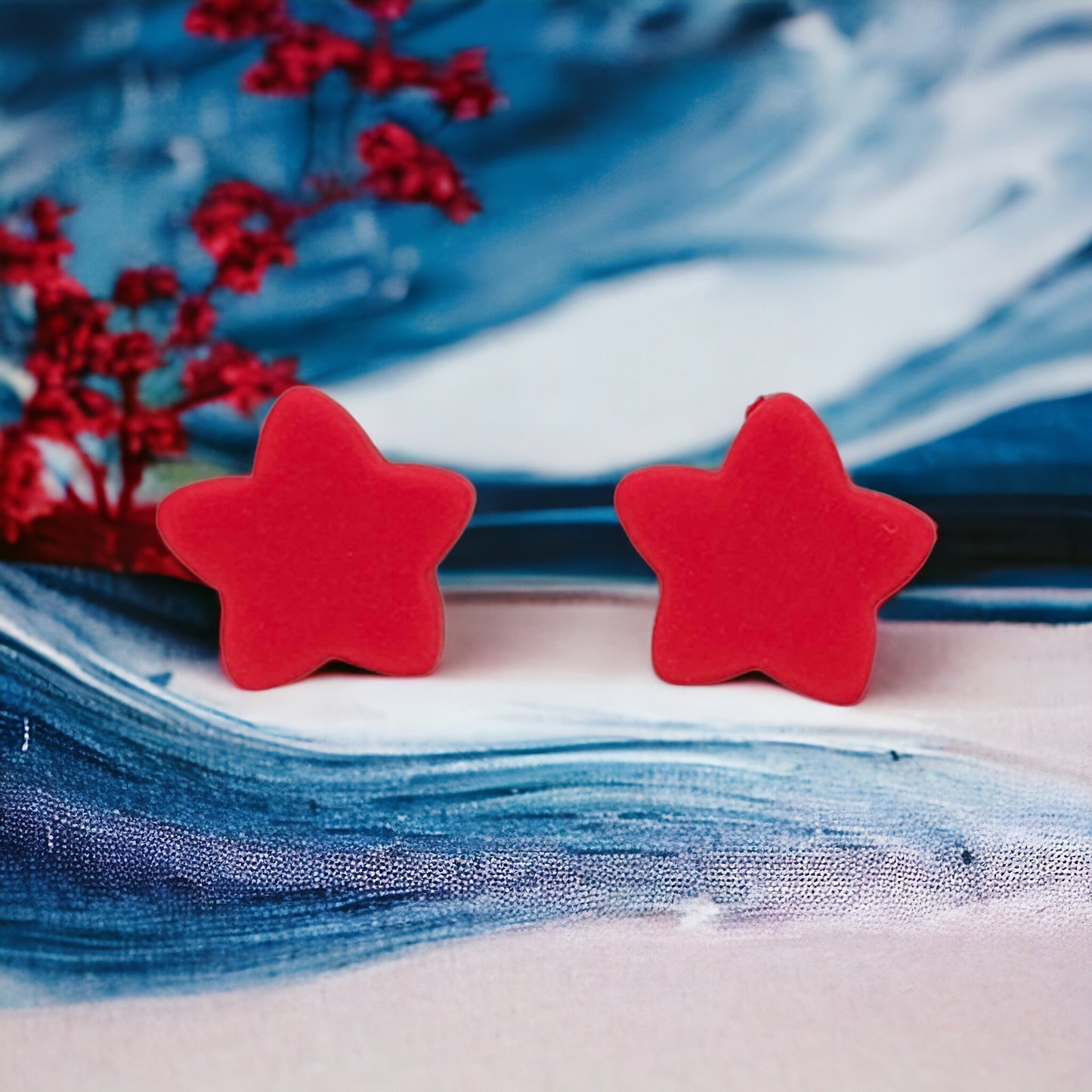 Σκουλαρίκια καρφωτά αστεράκια κόκκινα με πολυμερικό πηλό
