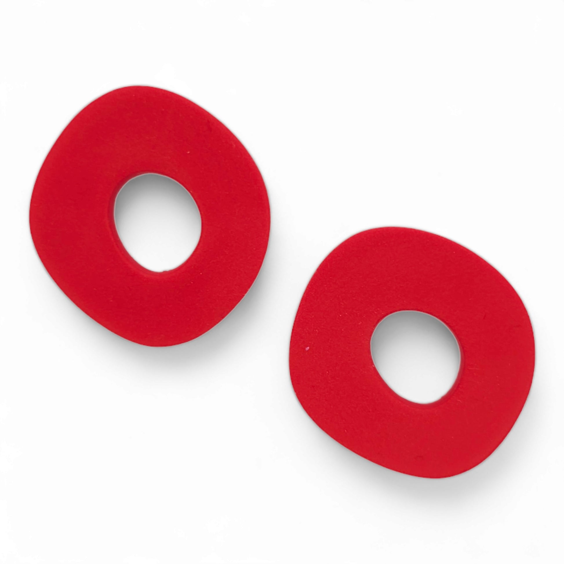 Σκουλαρίκια καρφωτά ασύμμετρα ντόνατς κόκκινα από πολυμερικό πηλό.