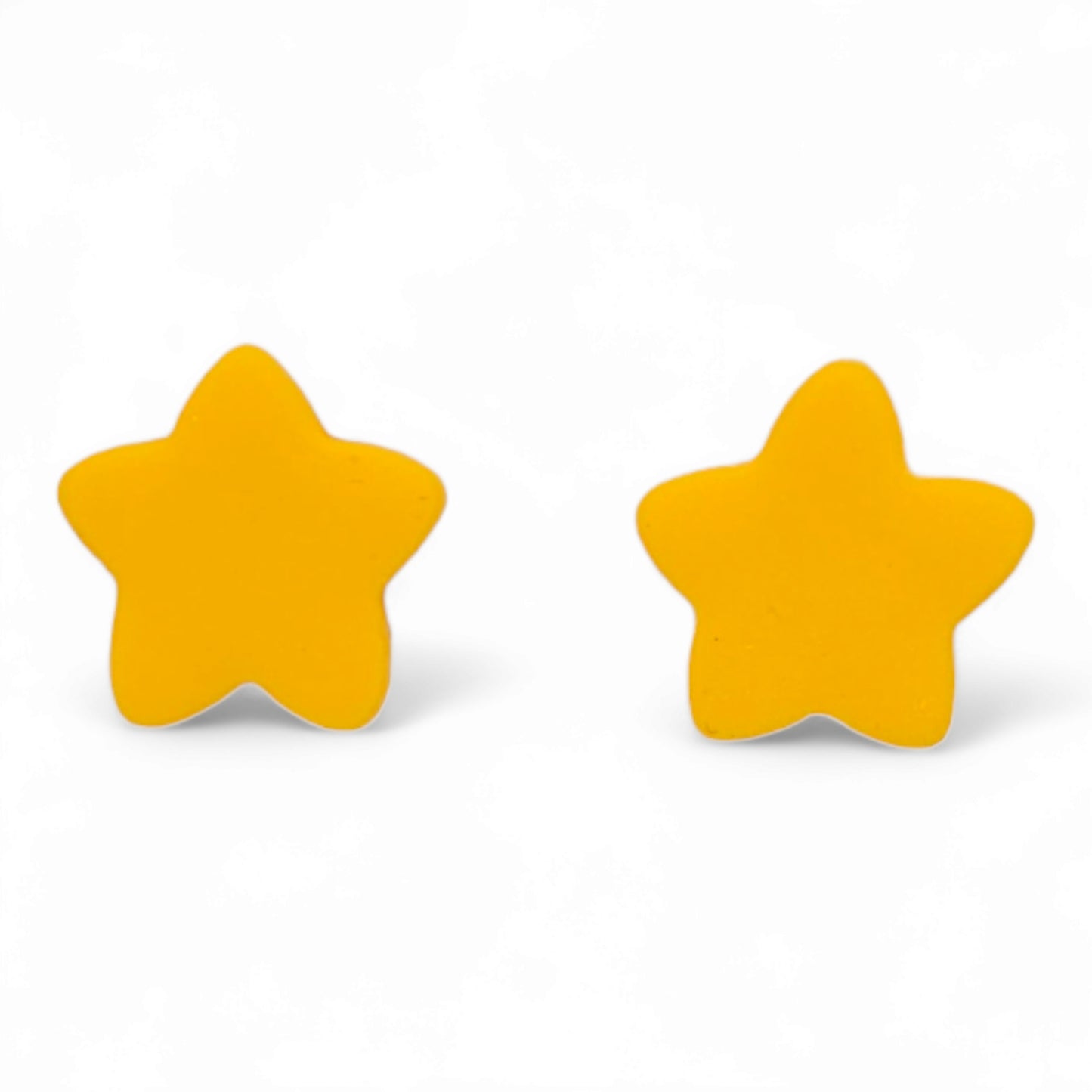 Σκουλαρίκια καρφωτά κίτρινα αστεράκια από πολυμερικό πηλό.
