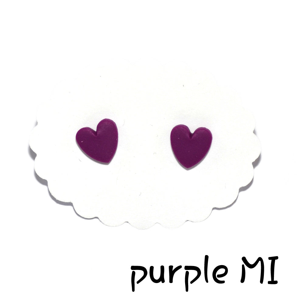 Σκουλαρίκια καρφωτά καρδούλες μωβ από πολυμερικό πηλό.