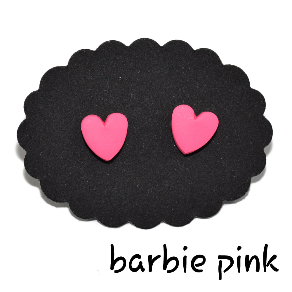 Σκουλαρίκια καρφωτά καρδούλες ροζ από πολυμερικό πηλό.