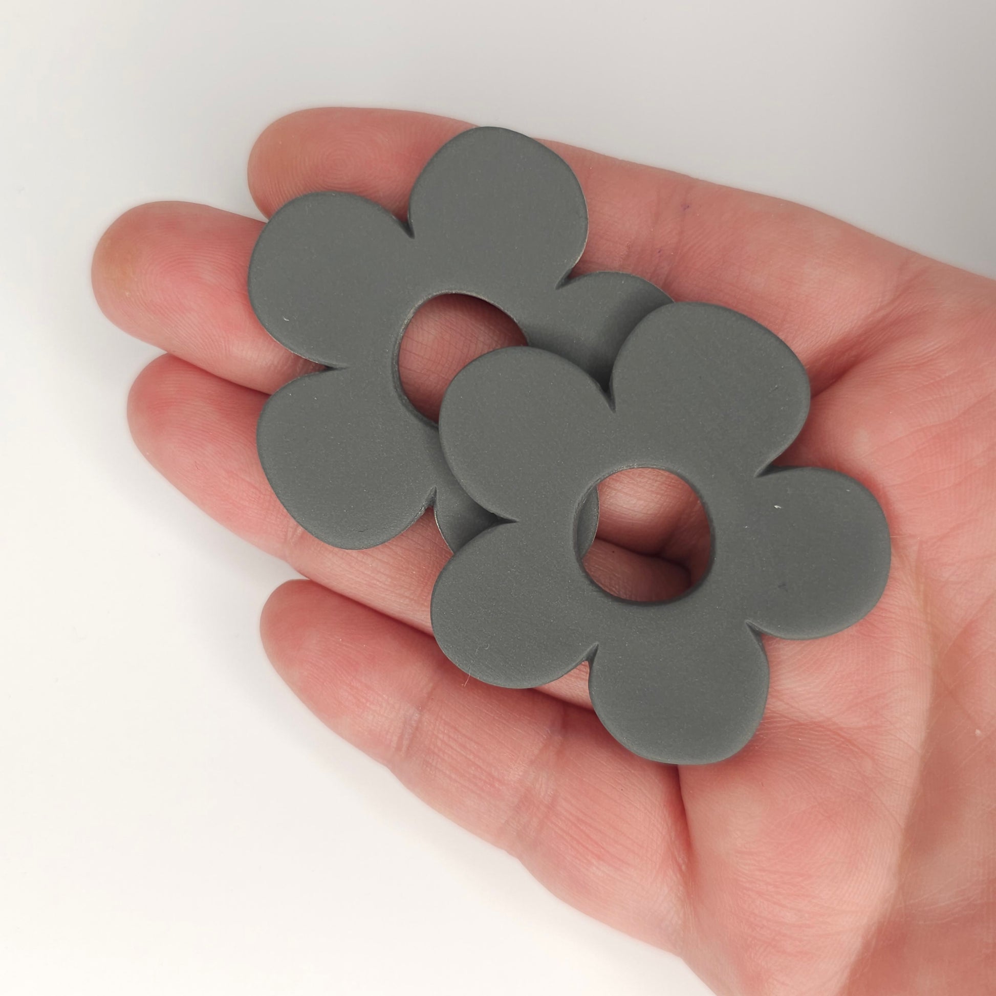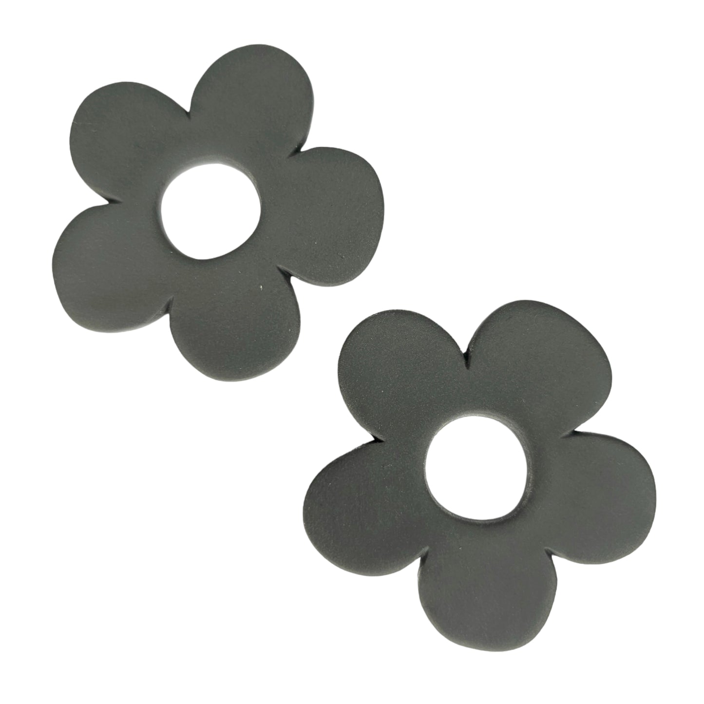 Σκουλαρίκια καρφωτά μεγάλα λουλούδια γκρι από πολυμερικό πηλό.