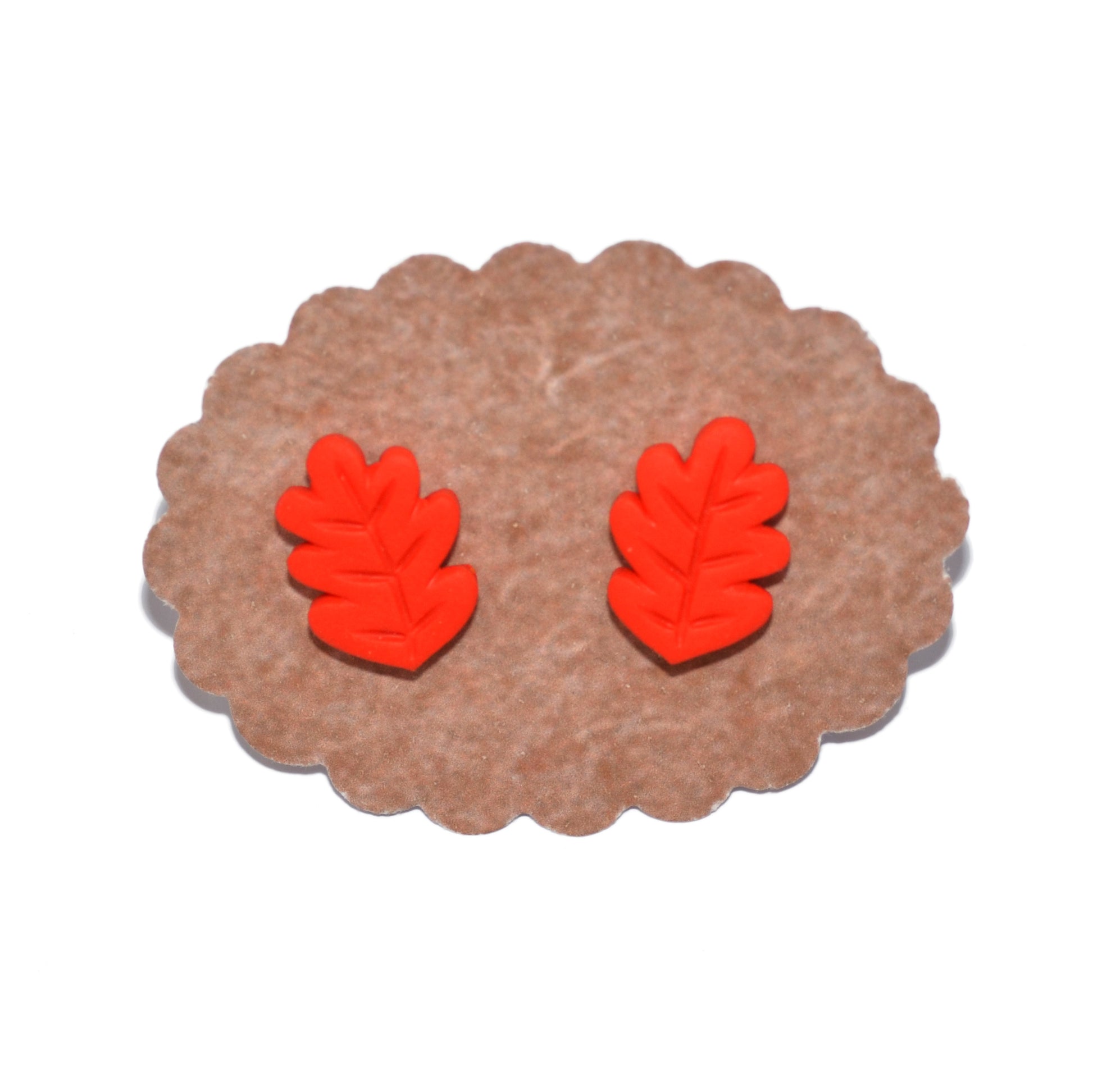 Σκουλαρίκια καρφωτά φυλλαράκια φθινοπωρινά κοραλλοκόκκινα γλυπτά στο χέρι με πολυμερικό πηλό.