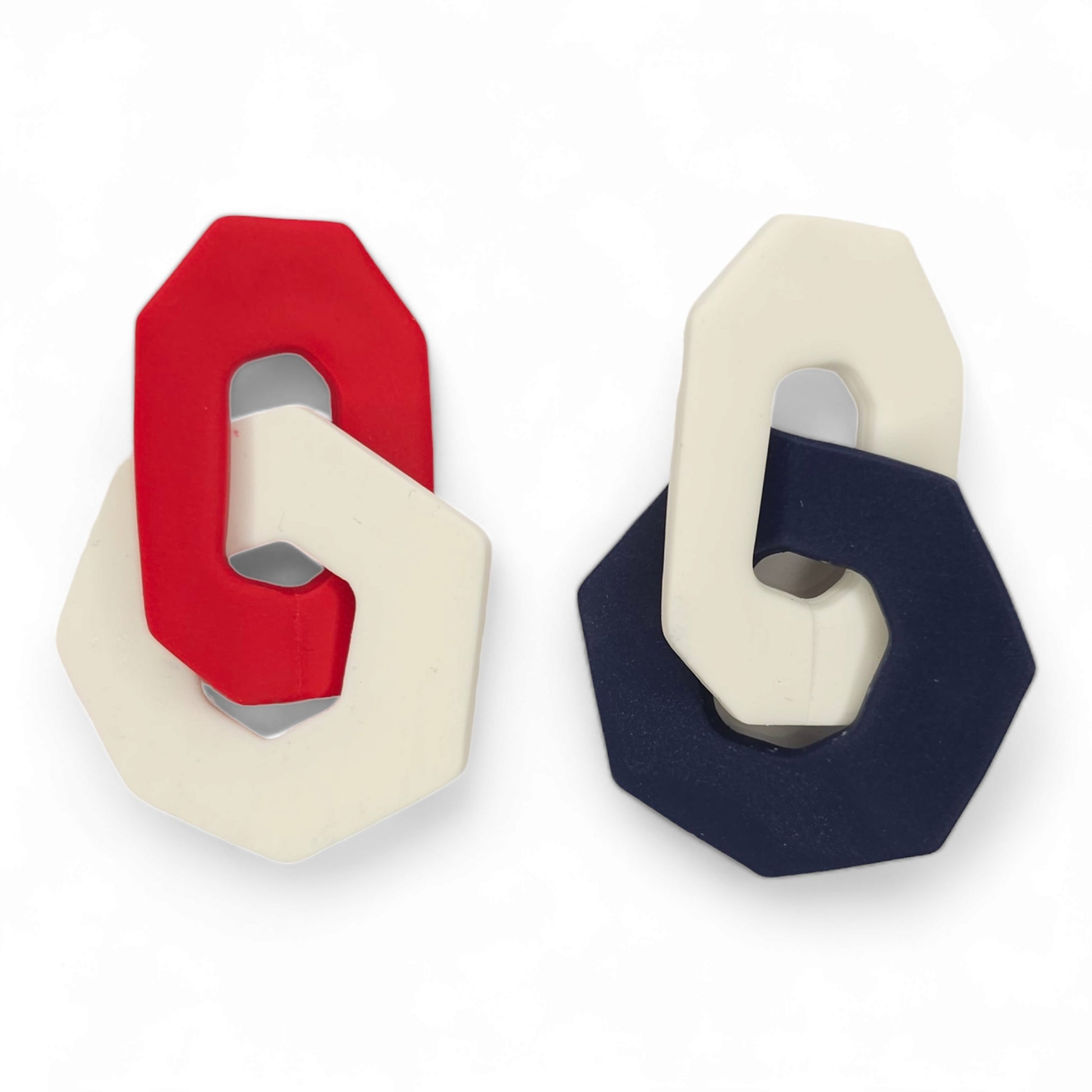 Σκουλαρίκια κρεμαστά ανόμοιοι κρίκοι κόκκινο μπλε άσπρο από πολυμερικό πηλό.