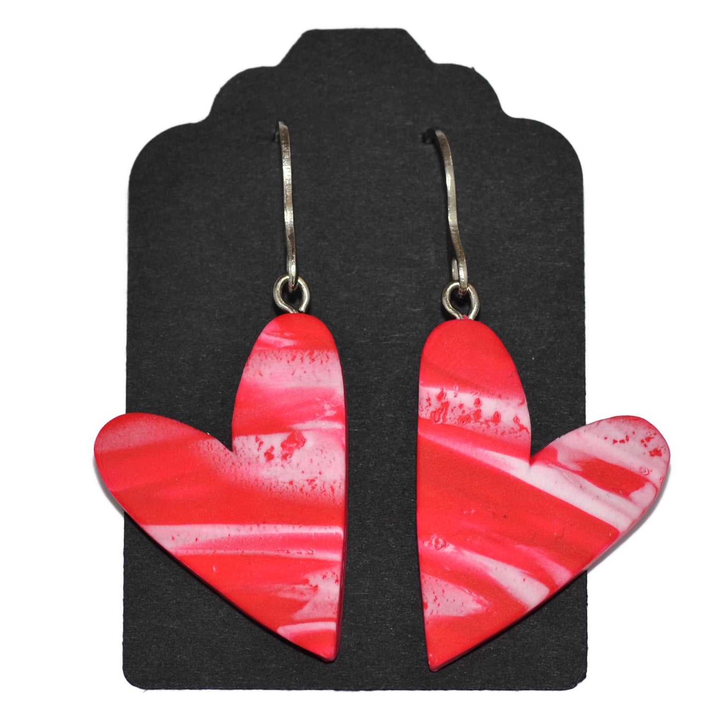 Σκουλαρίκια κρεμαστά καρδιές marble κόκκινο με υποαλλεργικά γαντζάκια από ανοξείδωτο ατσάλι.