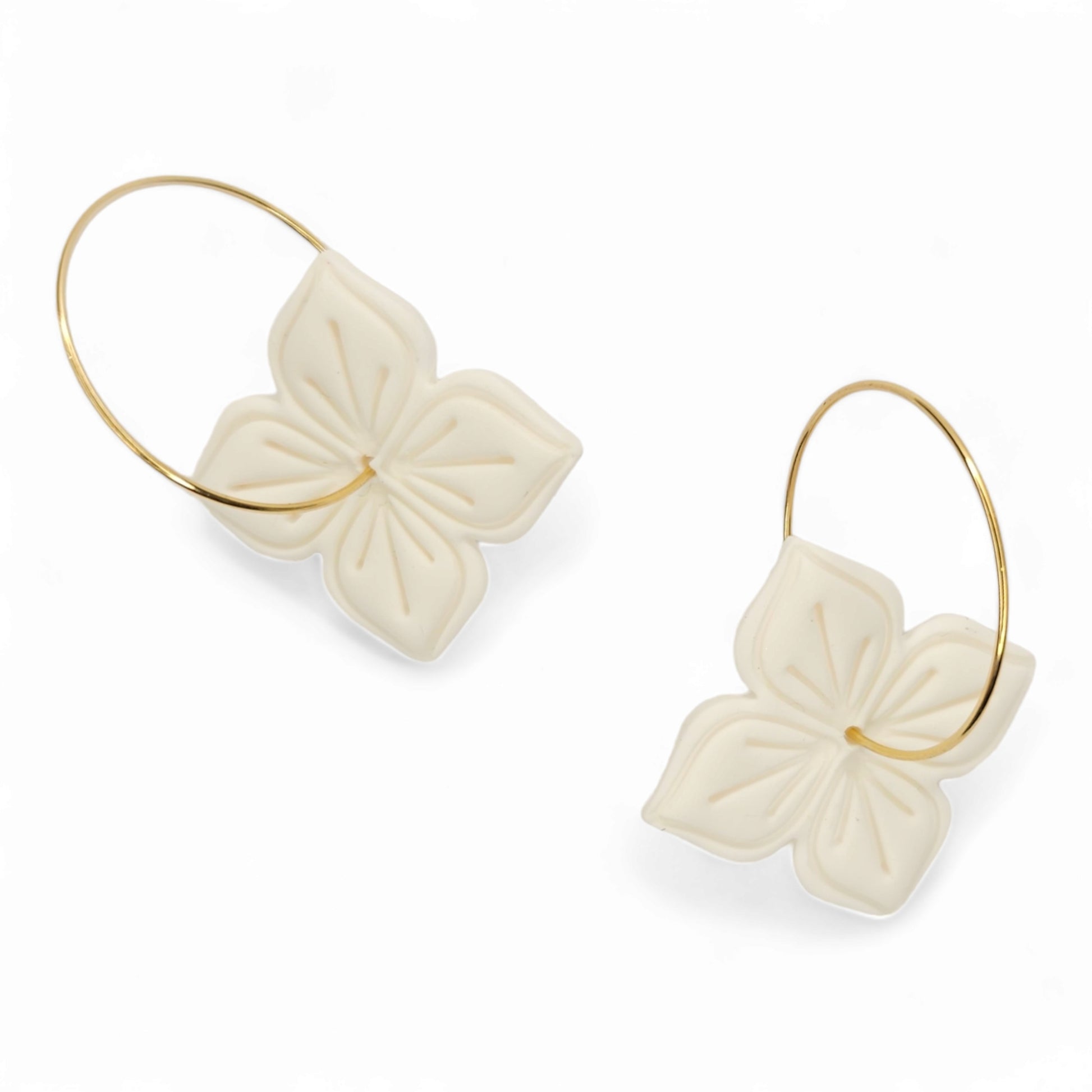Σκουλαρίκια κρεμαστά λευκά από πολυμερικό πηλό με υποαλλεργικούς επιχρυσωμένους ατσάλινους κρίκους.