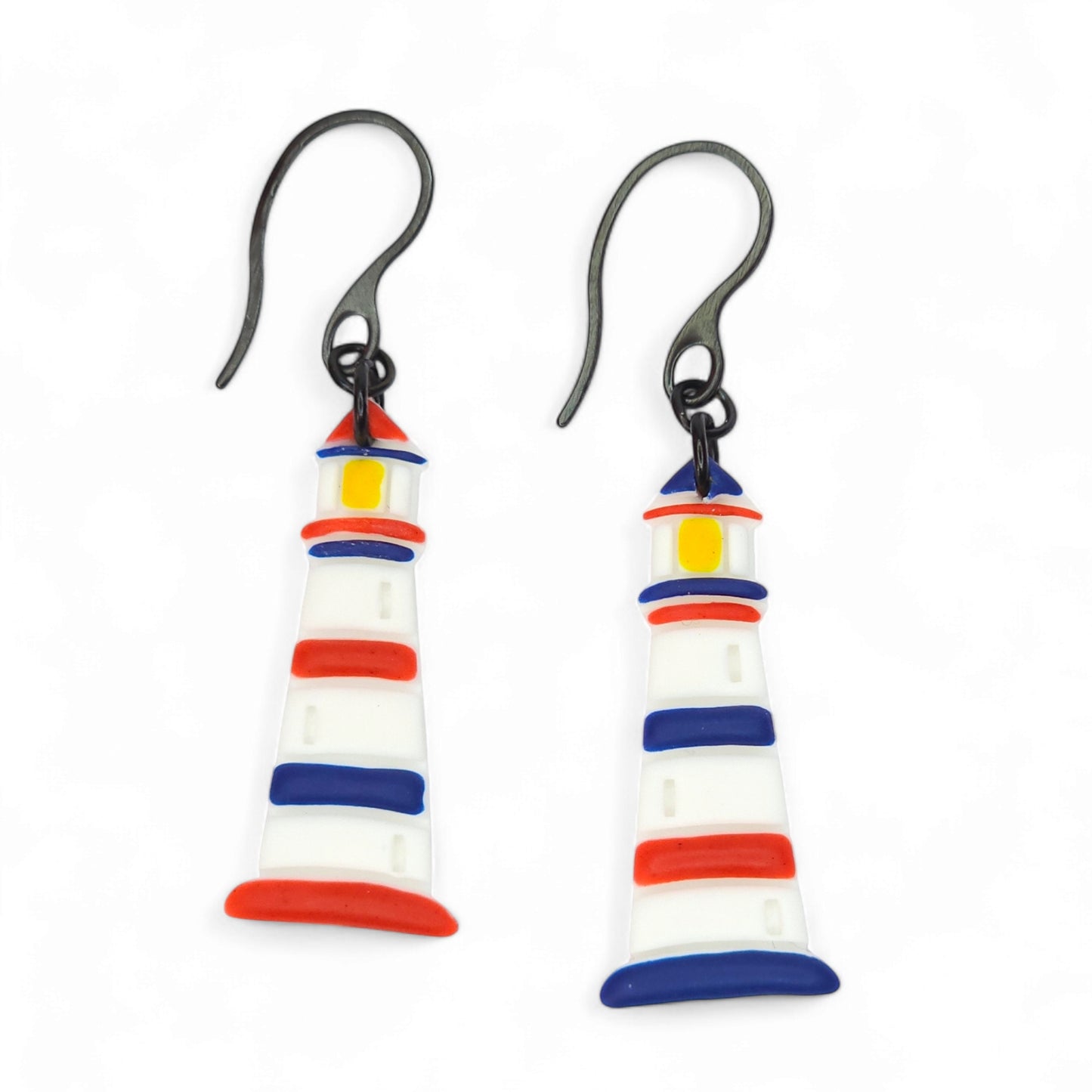 Σκουλαρίκια κρεμαστά φάροι στα χρώματα του Mondrian από πολυμερικό πηλό