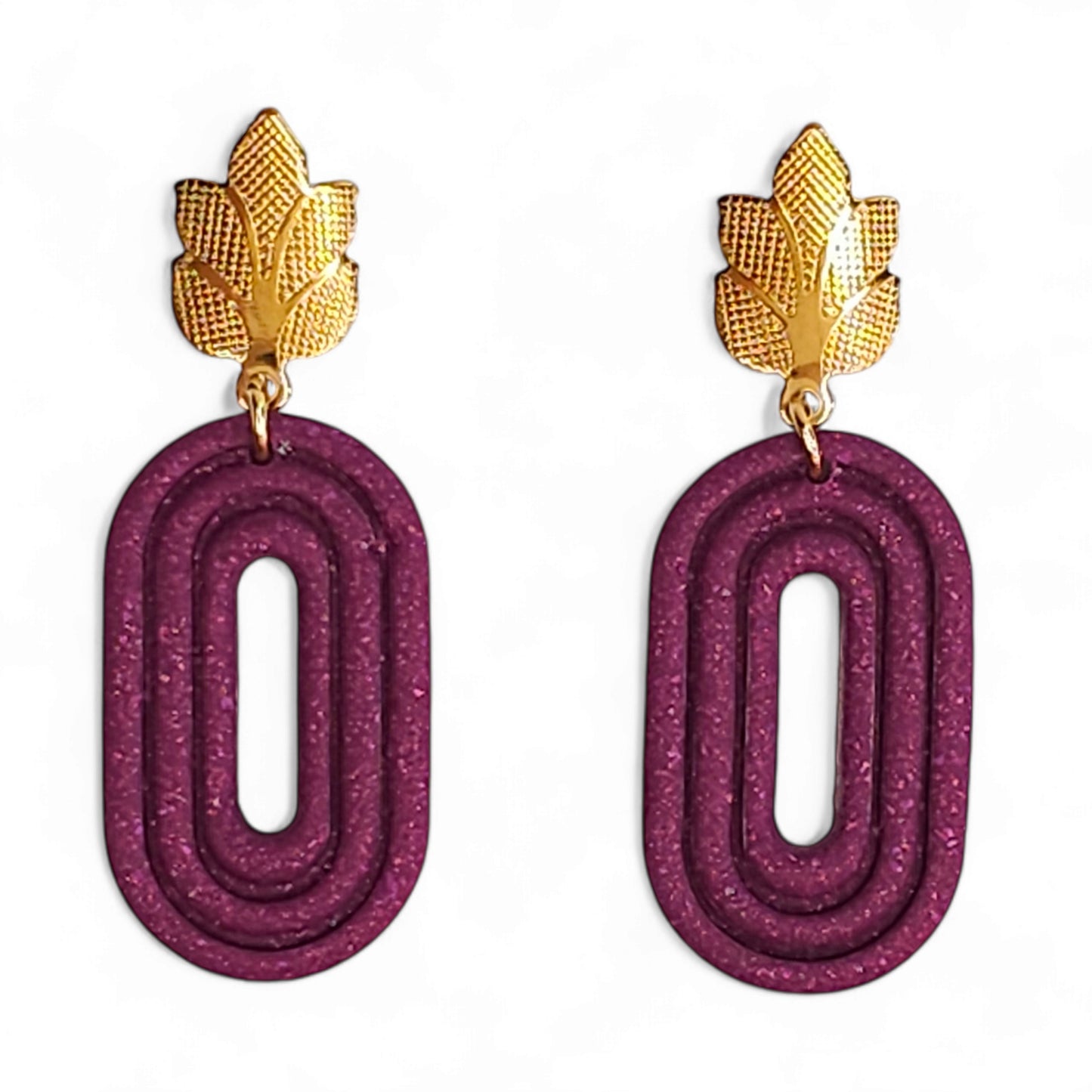 Σκουλαρίκια κρεμαστά glitter μωβ από πολυμερικό πηλό.