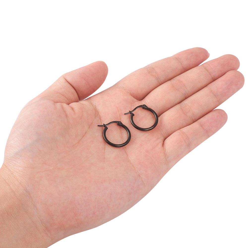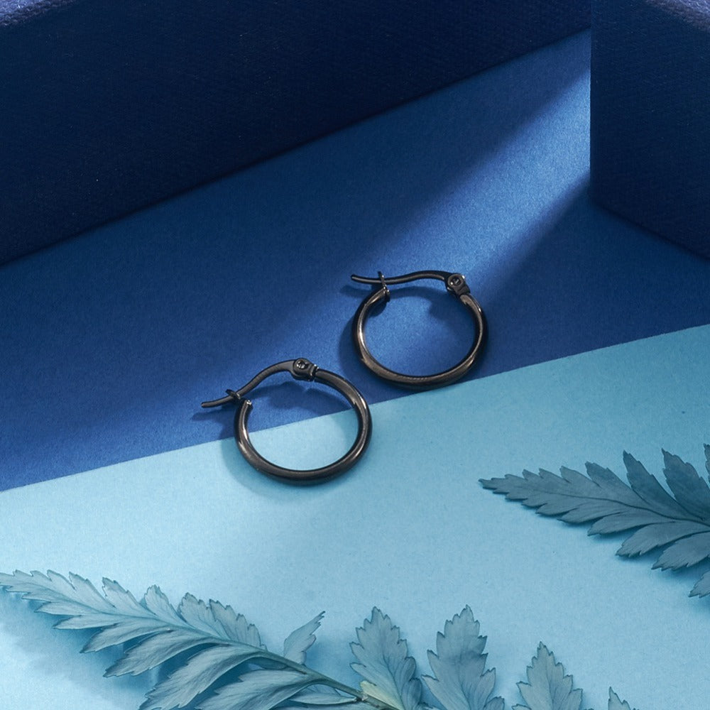 Σκουλαρίκια μικροί κρίκοι από μαύρο επιπλατινωμένο ανοξείδωτο ατσάλι.