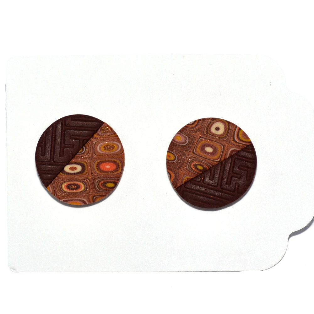 Σκουλαρίκια στρόγγυλα καρφωτά μισά μισά καφέ ρετρό.