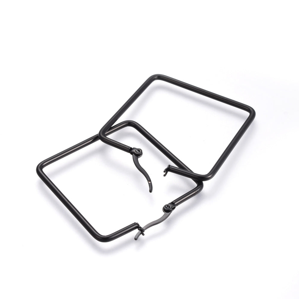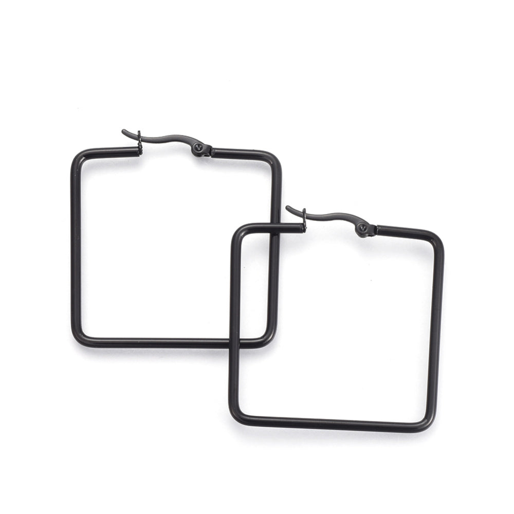 Σκουλαρίκια τετράγωνοι κρίκοι από μαύρο επιπλατινωμένο ανοξείδωτο ατσάλι.