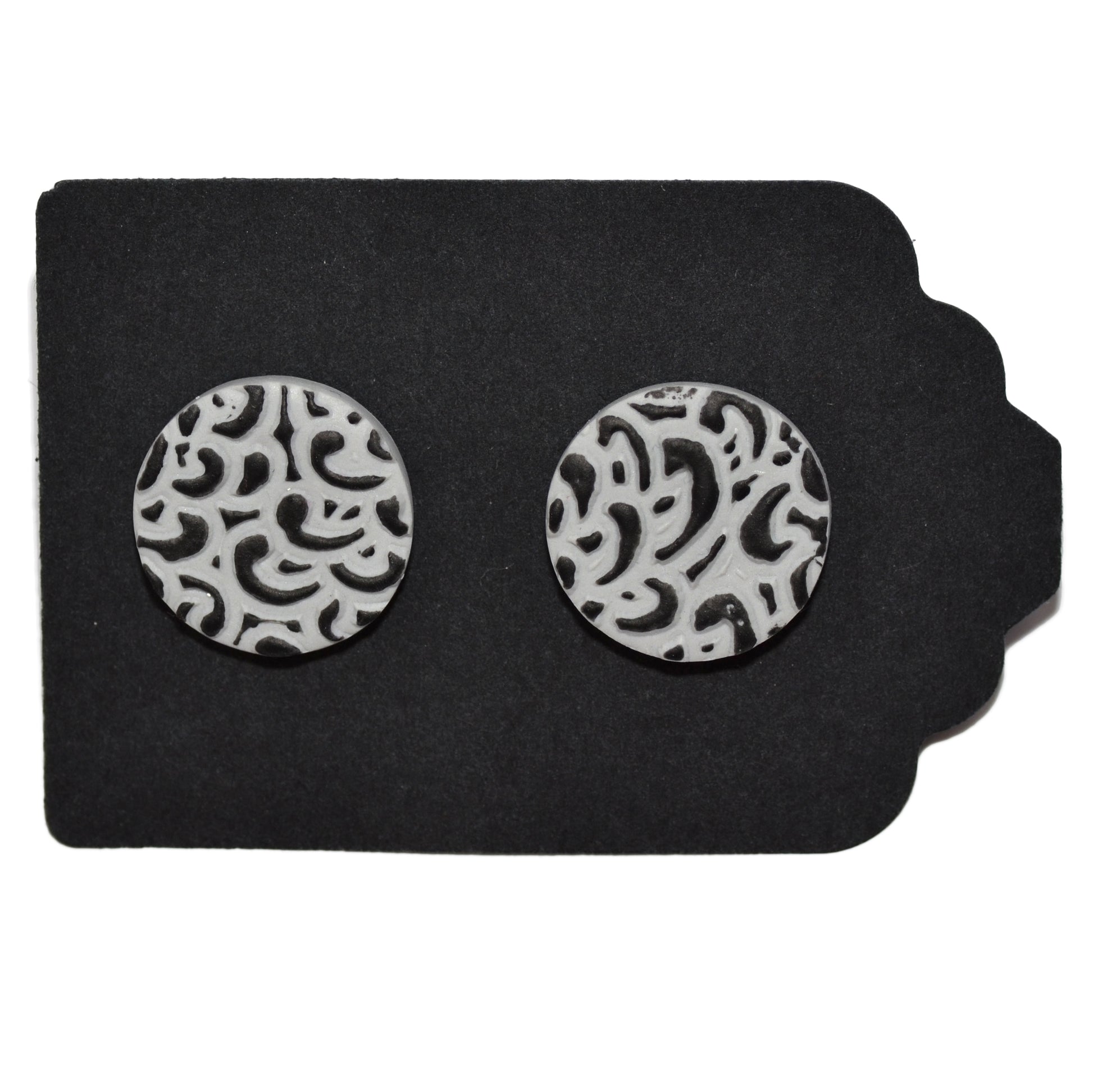 Στρογγυλά καρφωτά σκουλαρίκια γκρι animal print