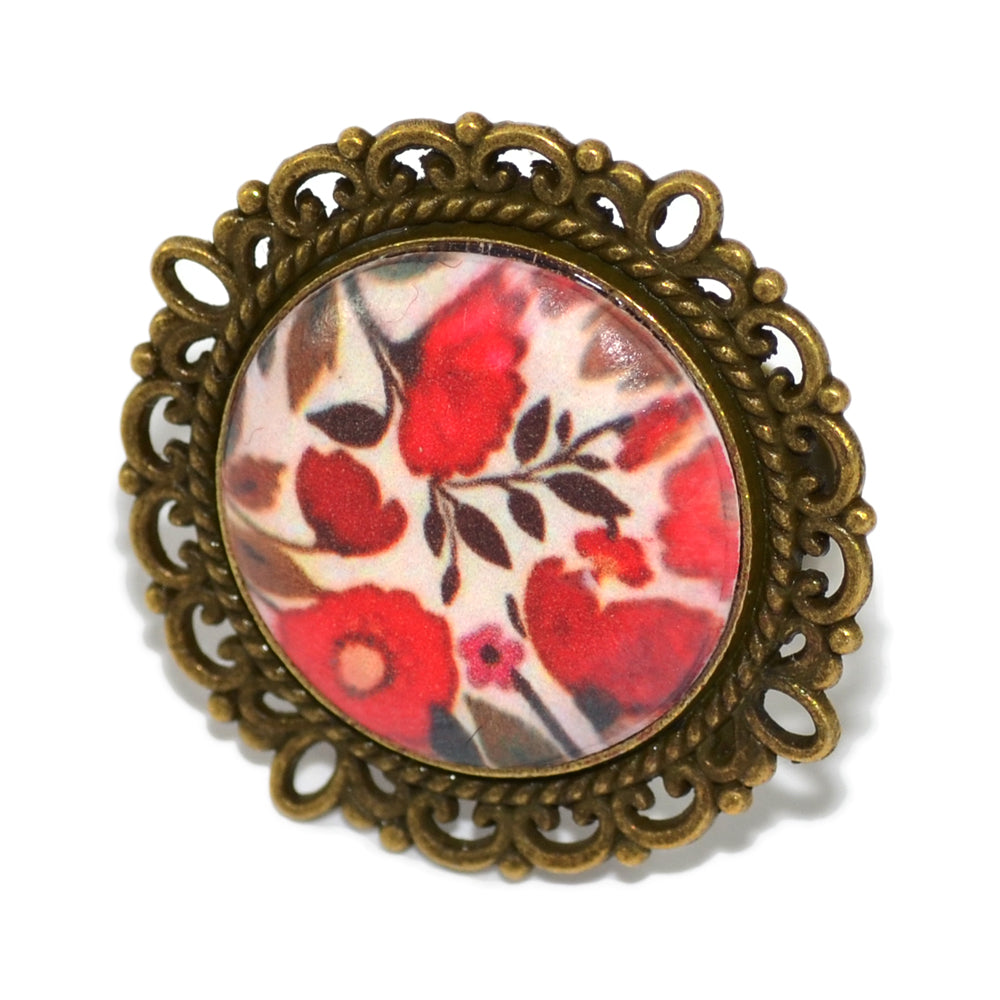 Στρογγυλό βίνταζ ρυθμιζόμενο δαχτυλίδι με φθινοπωρινό λουλουδάτο μοτίβο.