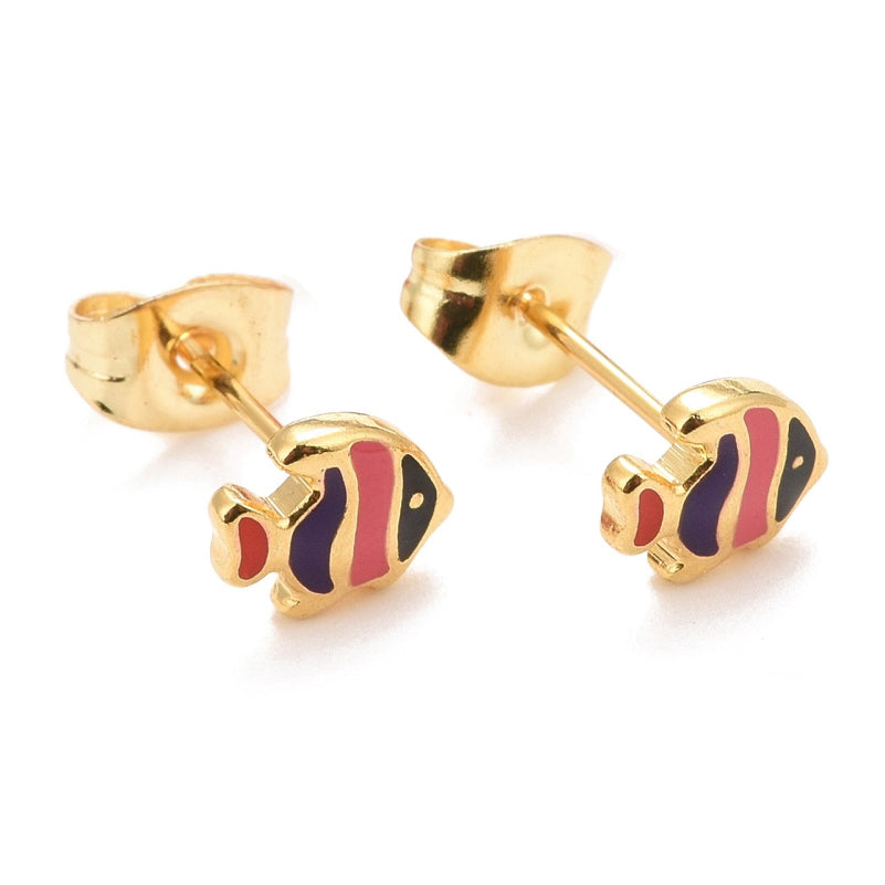 Τοσοδούλικα σκουλαρίκια καρφωτά ψαράκια από επιχρυσωμένο ανοξείδωτο ατσάλι & σμάλτο.