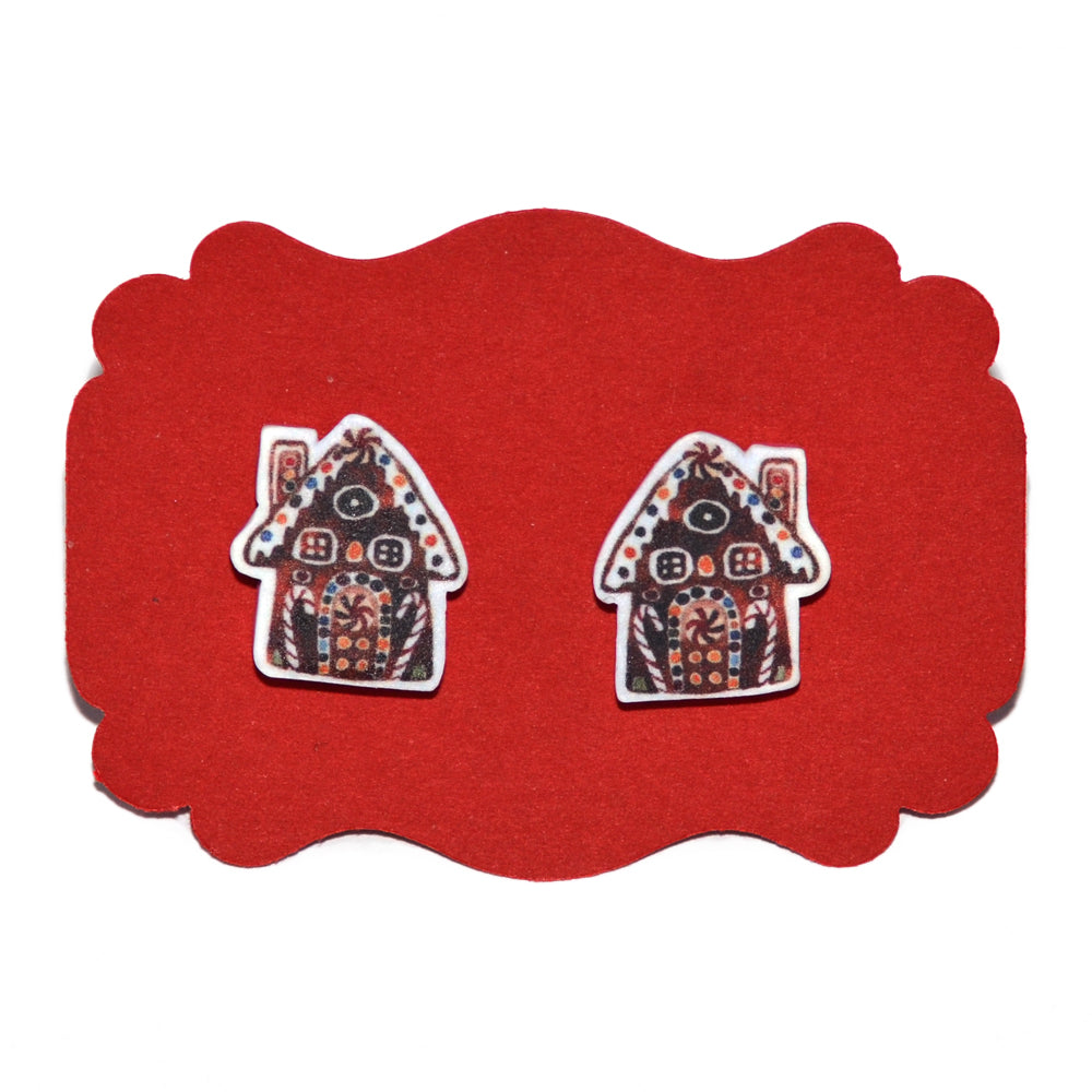 Χριστουγεννιάτικα καρφωτά σκουλαρίκια μπισκοτένια σπιτάκια