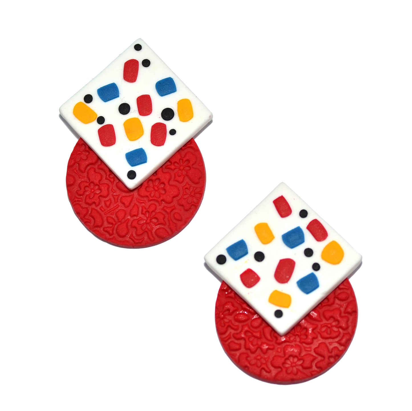 Kαρφωτά σκουλαρίκια τετράγωνα κόκκινο και λευκό πιτσιλωτό απ'τη συλλογή Deconstructed Mondrian.