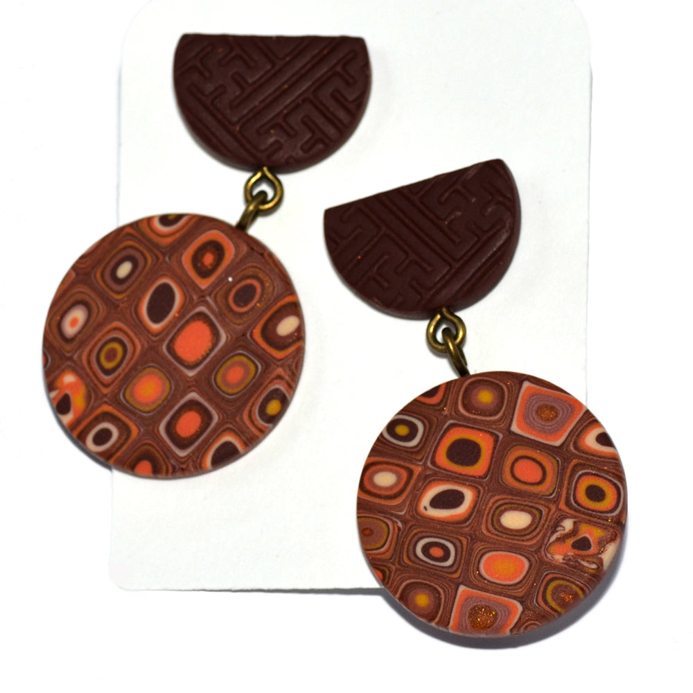 Krεμαστά σκουλαρίκια ρετρό καφέ στρογγυλά.