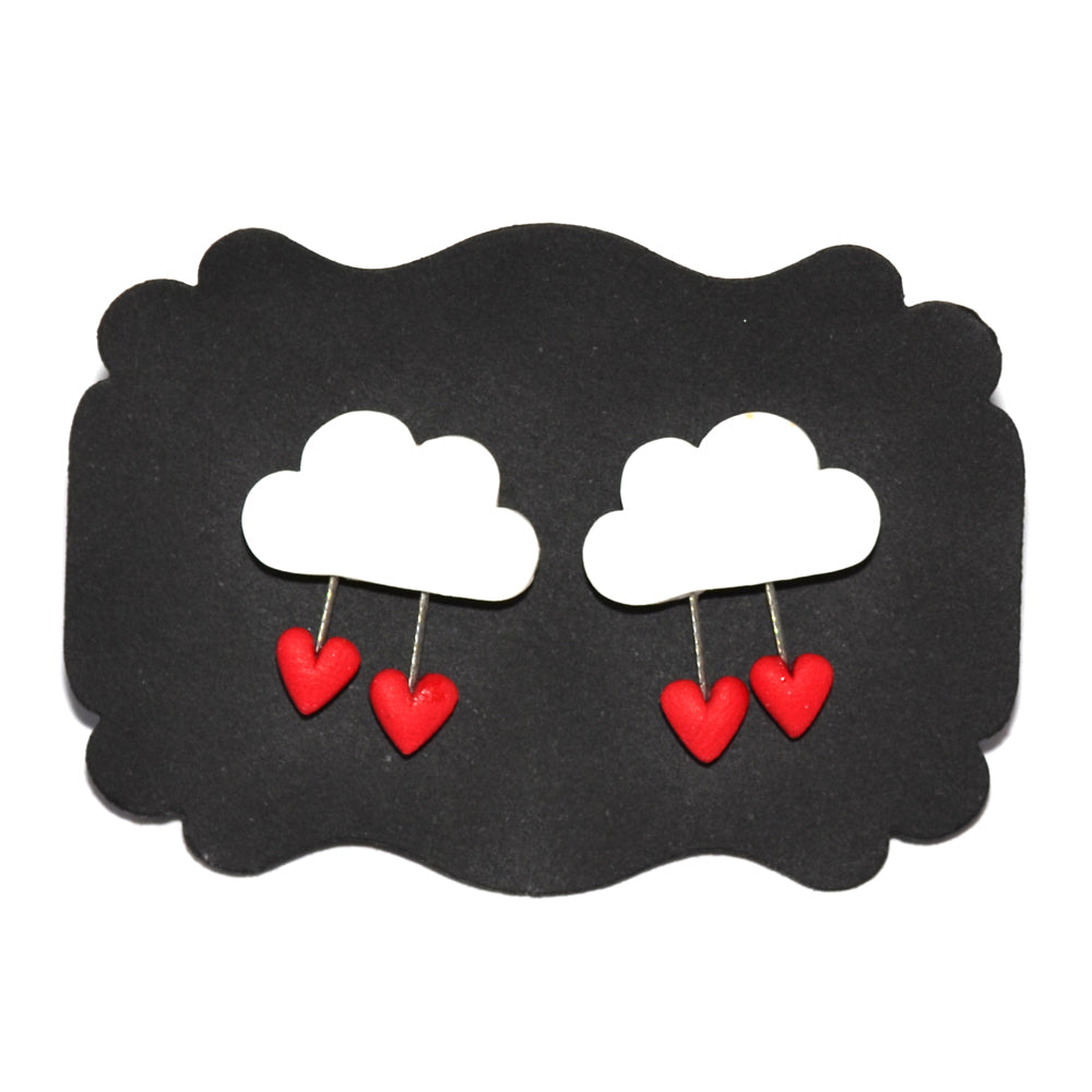 Καρφωτά σκουλαρίκια λευκά συννεφάκια με κόκκινες καρδούλες
